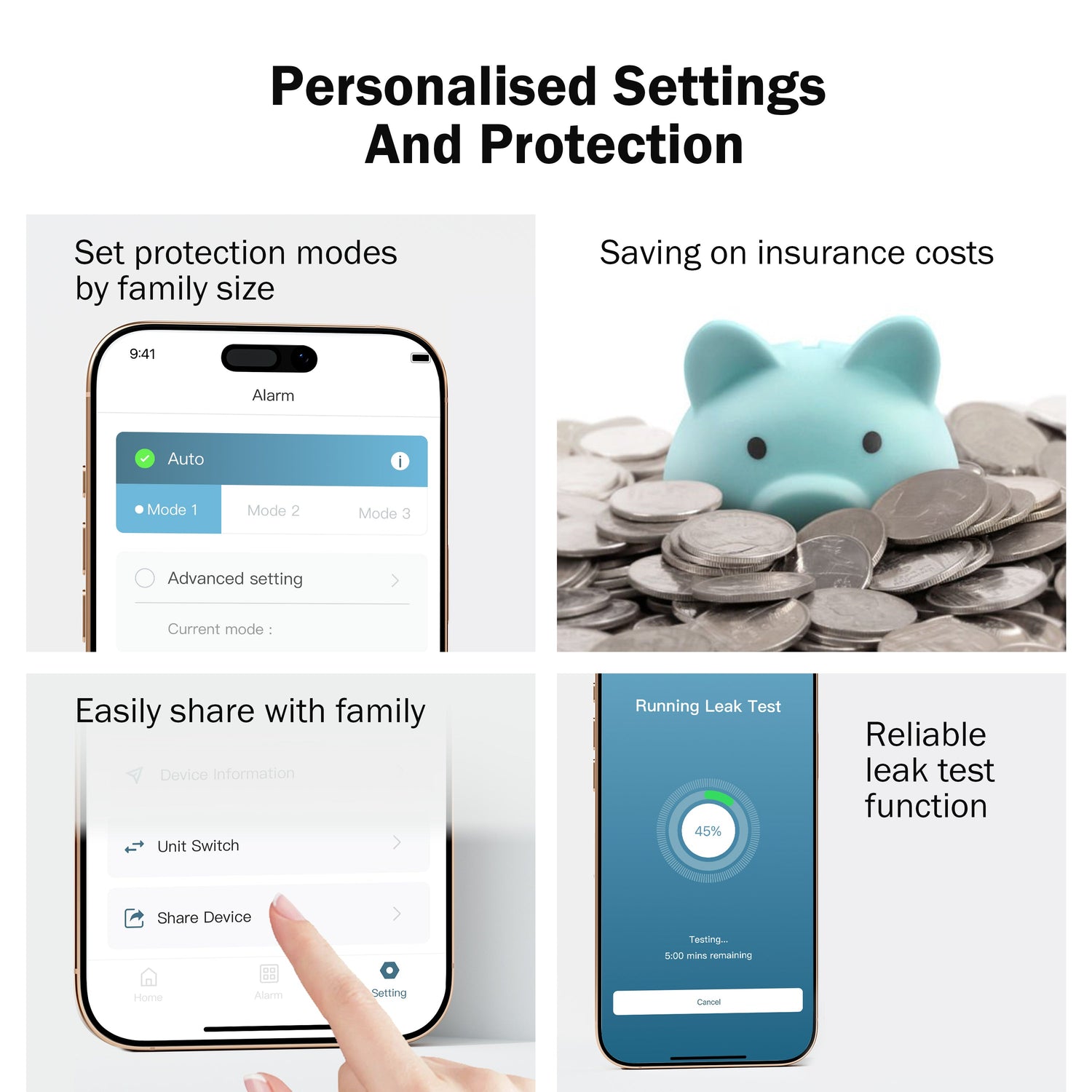 [Personalized Protection For Your Unique Needs]--Customize your leak protection to match your household’s specific needs. frizzlife allows for tailored settings based on water usage habits, family size, and daily schedules, reducing false alarms and ensuring precise, responsive protection.